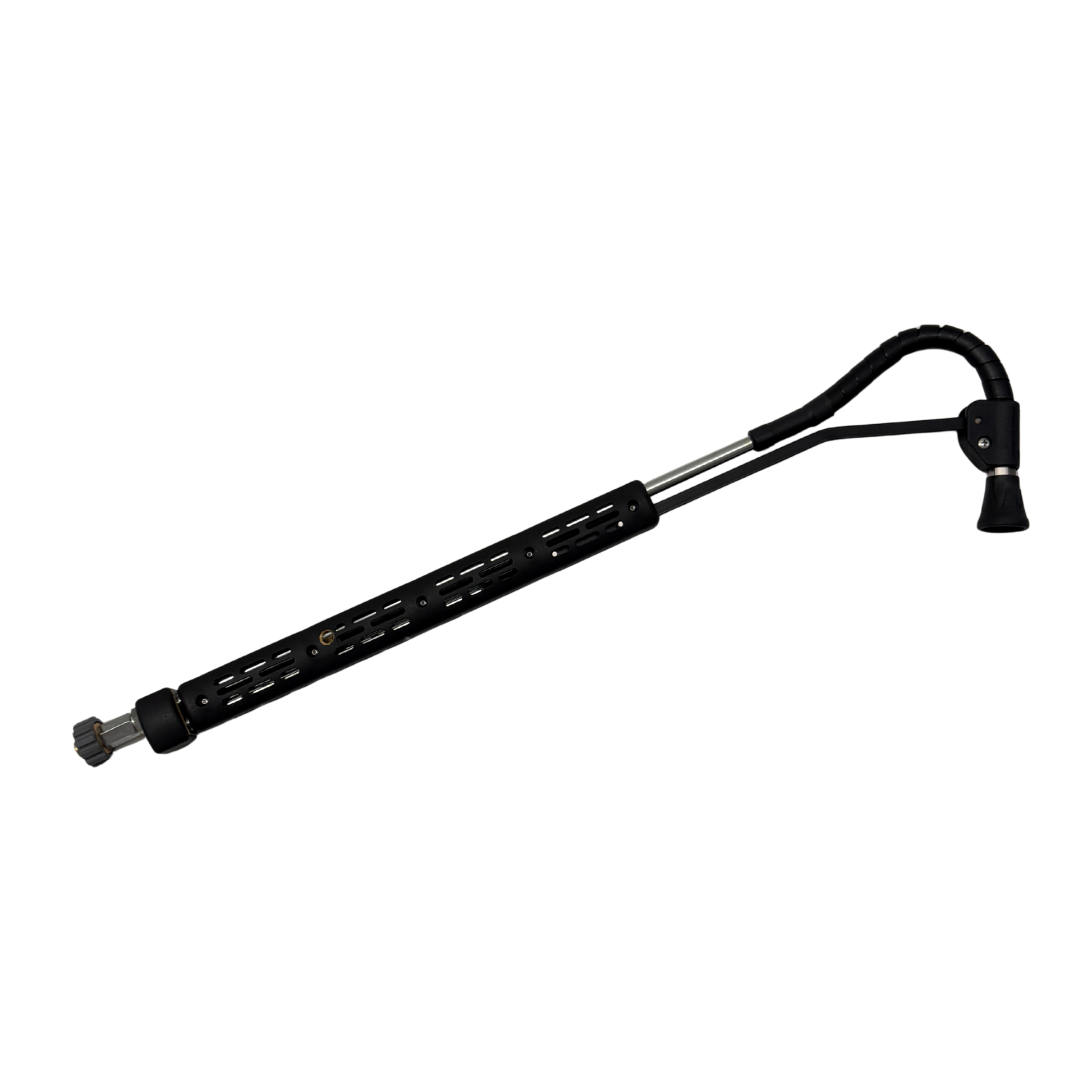 It is an 850mm long, flexible, industrial-grade high-pressure jet lance with a pivoting lance head. This jet lance is a practical accessory for all high-pressure cleaners with an M22 x 1.5 external thread connection on the high-pressure gun. The spray angle can be continuously adjusted from 20° to 140° under pressure. This allows you to reach every nook and cranny, even those hard-to-reach areas, effortlessly.