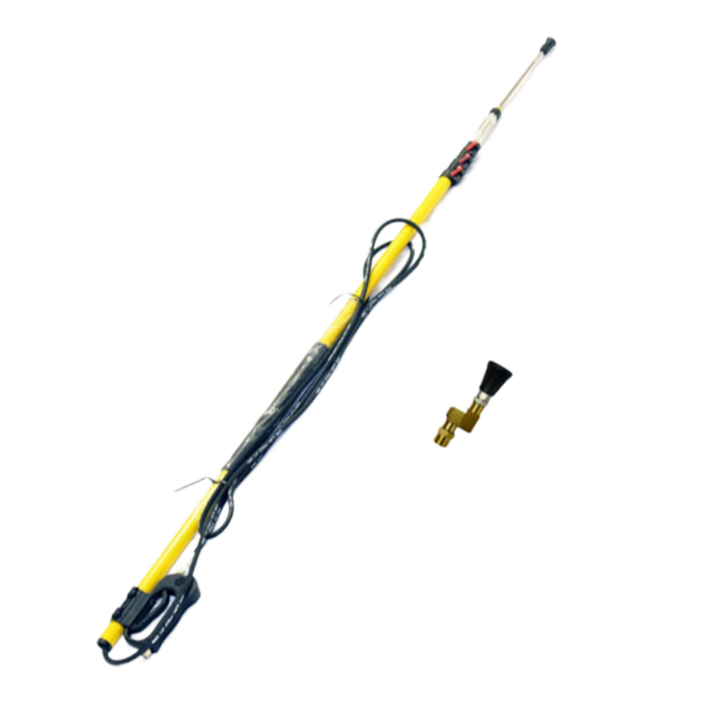 Easy-Teleskoplanze von ca. 2,10m bis max. 7,4m ausziehbar, aus Aluminium und Glasfiber kpl. mit Hochdruckpistole, 240° Knickgelenk u. Düse, sowie K-Lock TR22-Außengewinde Anschluss, passend für Kärcher Easy!Lock siehe Produktliste.