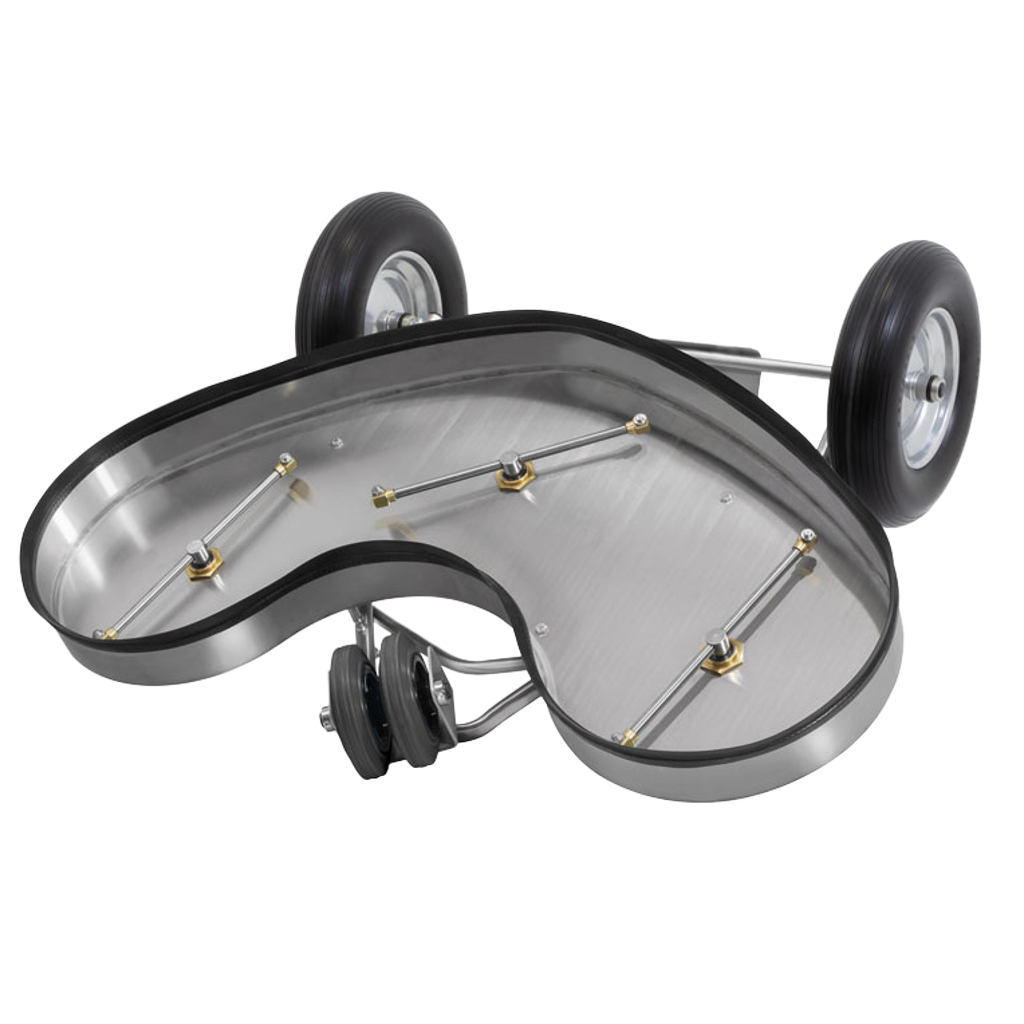 sehr manövrierfähig: Ausgestattet mit zwei 380mm großen schlauchlosen Industrierädern und einer 160mm großen Doppellenkrolle für sehr gute Wendigkeit.
