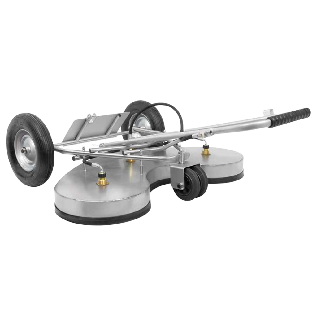 Dieser Flächenreiniger ist die ideale Lösung für eine professionelle Reinigung großer und sehr großer Flächen. Mit einer beeindruckenden Arbeitsbreite von 1200 mm und drei rotierenden Armen die mit jeweils zwei Hochdruckdüsen versehen sind, bietet dieser Flächenreiniger eine vielfach schnellere und gründlichere Reinigung. Egal ob Verbundsteinpflaster, Beton, Asphalt, Holzdecks, Garagenböden, Hallen - der Turbodevil® 1200VA liefert stets gleichmäßige, streifenfreie Ergebnisse.