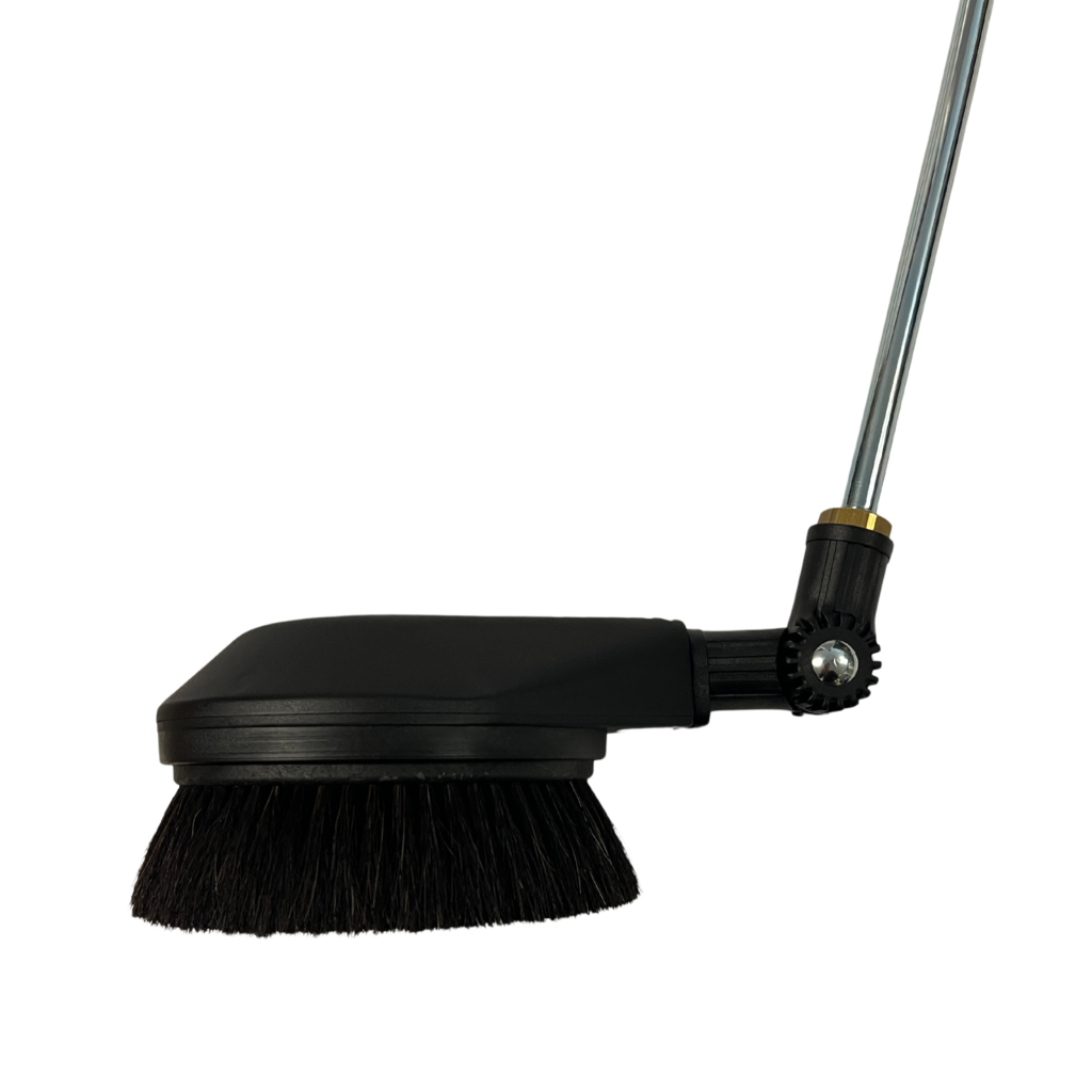Es handelt sich um eine rotierende Profi-Gelenkwaschbürste bzw. Autowaschbürste aus hochwertigen Naturhaar, einem Lanzenrohr von ca. 500mm Länge und einem Anschluss mit Stecknippel D12, zum einstecken in die Kupplung der Hochdruckreinigerpistole mit Steckkupplung D12. Der Bürstenkranz rotiert durch den Wasserstrahl des Hochdruckreinigers, diese Rotation erhöht die Reinigungswirkung.